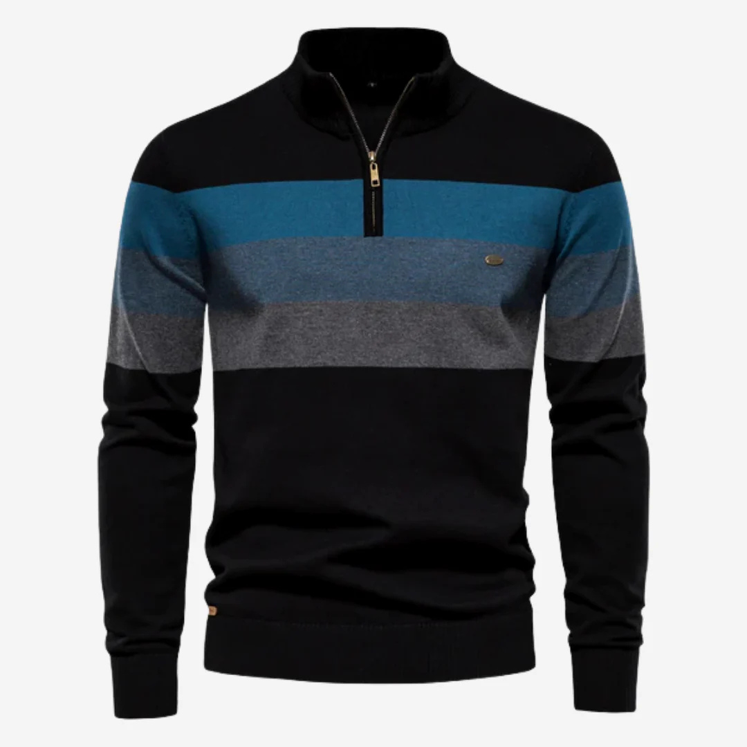 Vår tröja förenar Retro-charm med modern funktionalitet. Med sin höga krage och korta dragkedja erbjuder denna tröja den perfekta blandningen av värme och stil. Dess vintage-linjer och dekorativa ränder ger din outfit en touch av originalitet och skapar en modeinspirerad look och oöverträffad komfort på de kallaste dagarna.