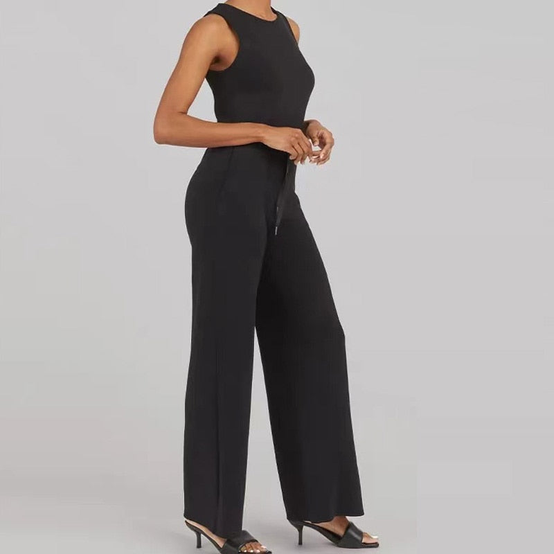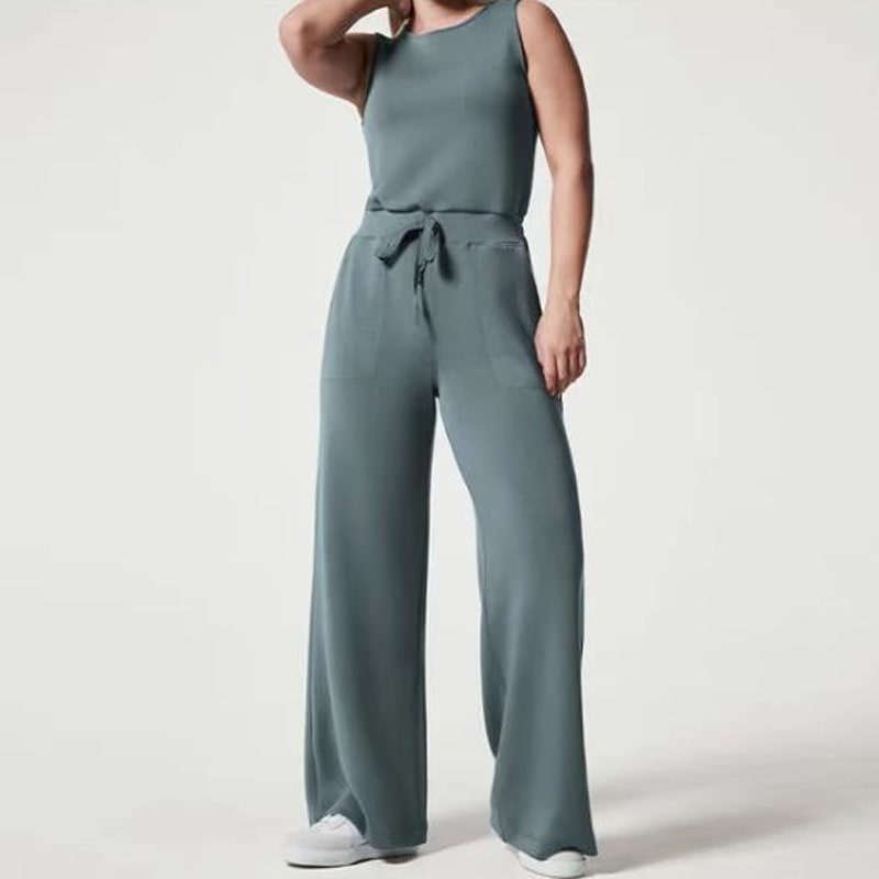 Denna jumpsuit är perfekt för alla tillfällen, oavsett om du har en dag på kontoret, en utekväll eller bara vill koppla av hemma. Jumpsuiten är tillverkad i mjukt material som andas och håller dig bekväm hela dagen utan att kompromissa med stilen. Den eleganta och smickrande designen har en figurnära skärning och vida byxor, vilket ger dig en smal och sofistikerad silhuett.