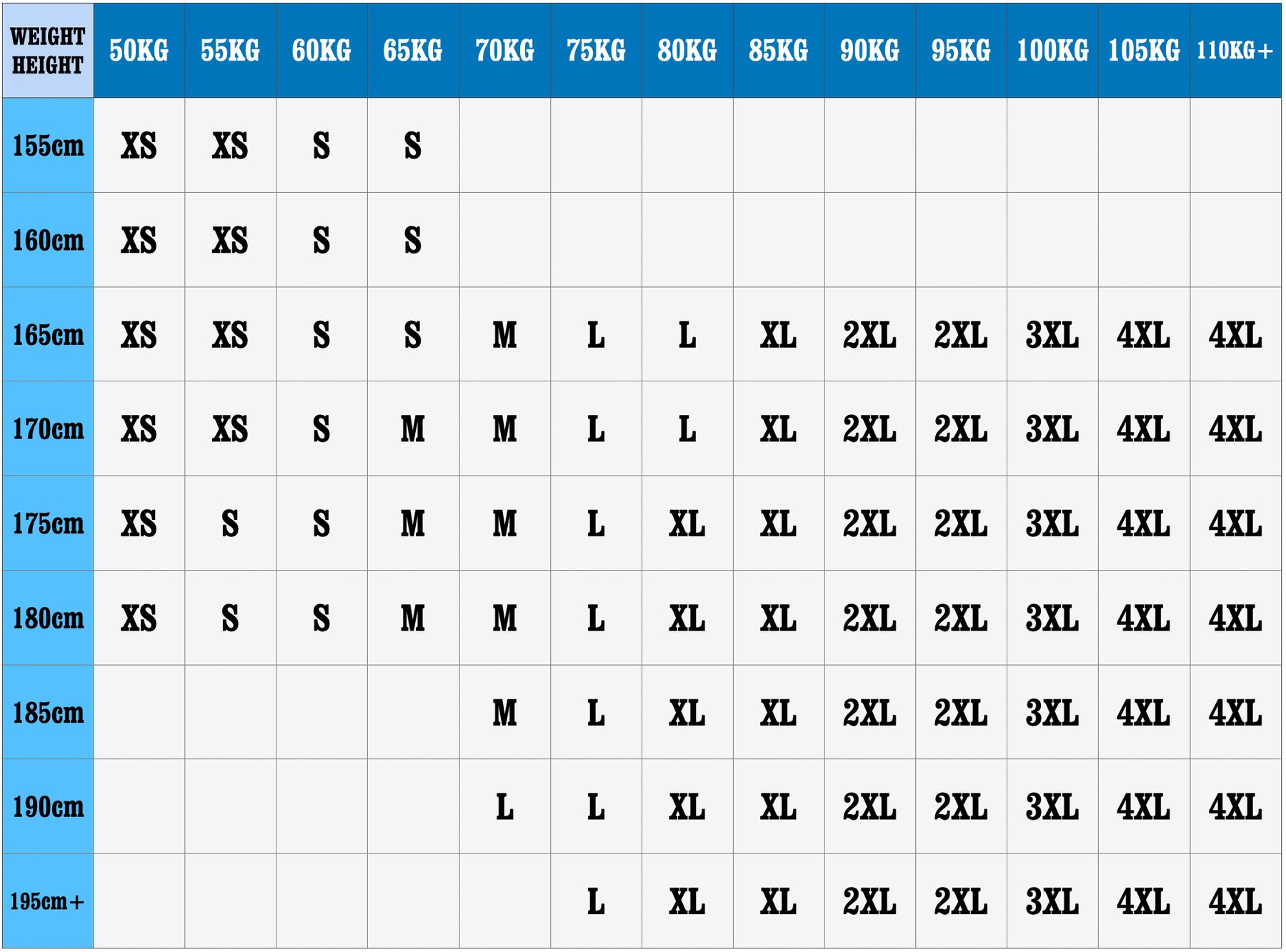 • Storleksalternativ: S, M, L, XL, 2XL, 3XL, 4XL