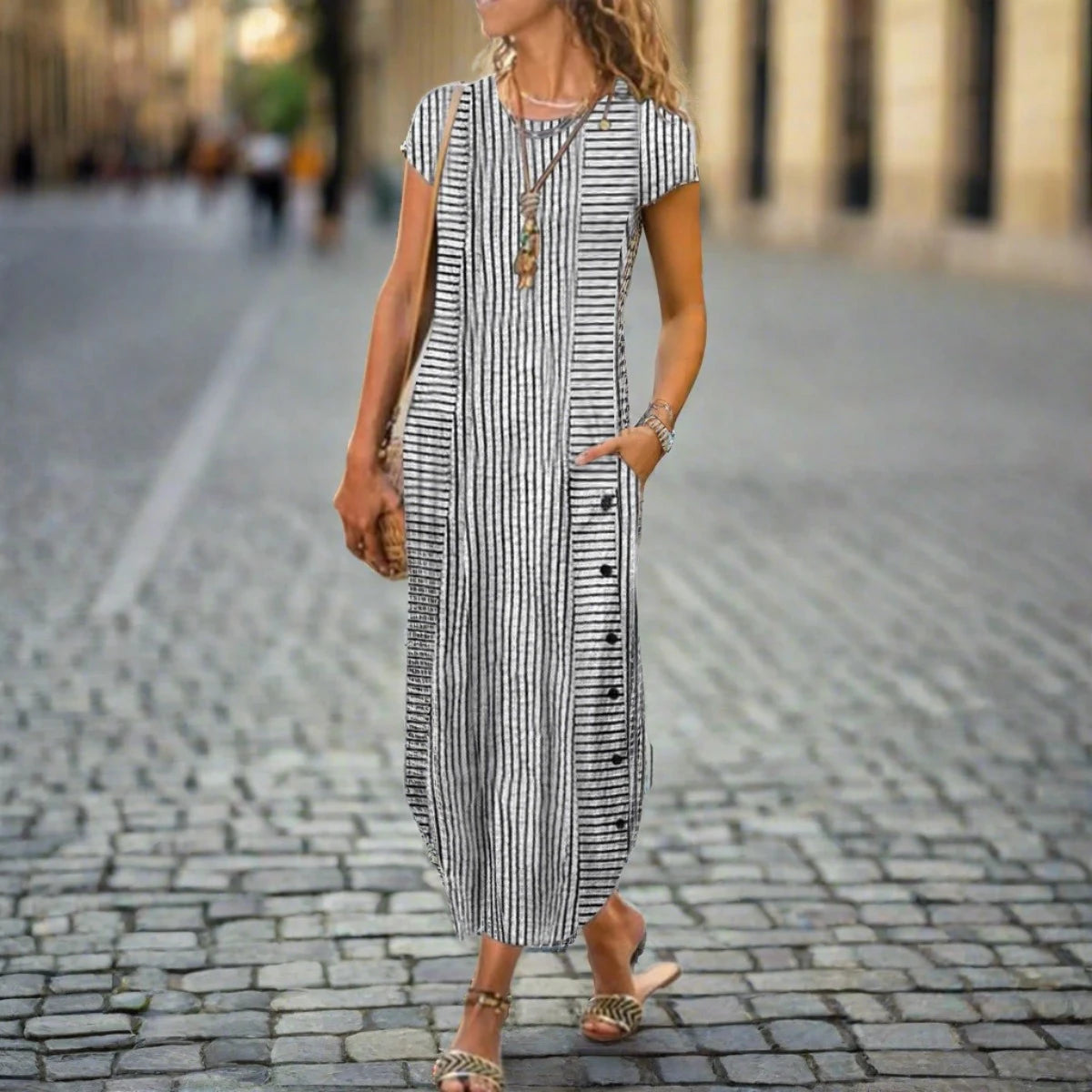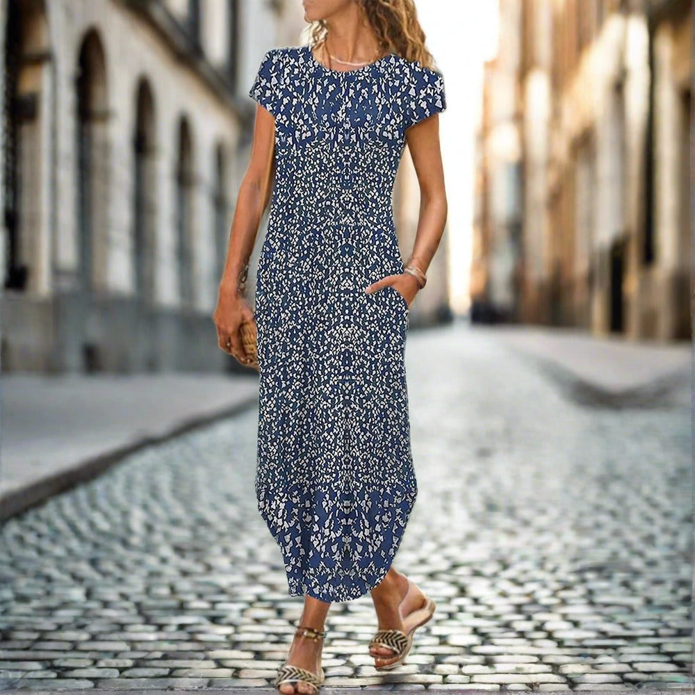 Alicia - Trendig kortärmad midiklänning med sidofickor
