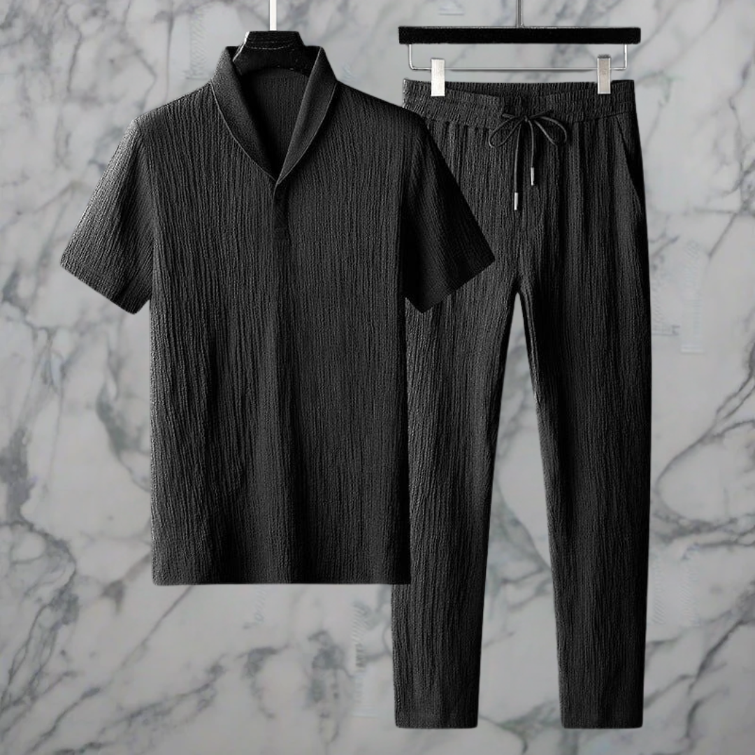 Njut av avslappnad lyx och stil med vårt Charles Casual-set, där varje ögonblick hyllar komfort, sofistikering och enkel charm.