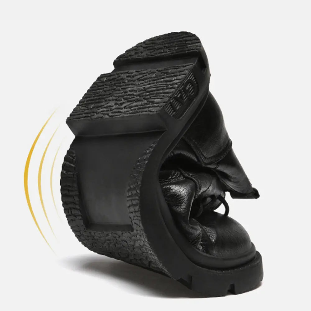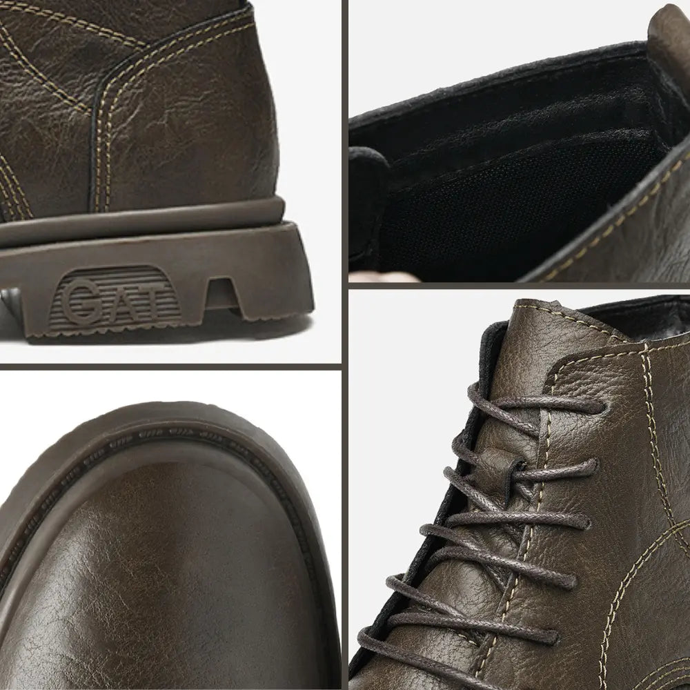 Vi presenterar GAT-militärstövlarna. Dessa stövlar, noggrant tillverkade av högkvalitativt veganskt läder, utstrålar inte bara en robust, militär estetik, utan ger också en diskret höjning på 8 cm som stärker ditt självförtroende och din statur. Höj din stil, erövra varje terräng och stå rak med GAT-stövlarna!